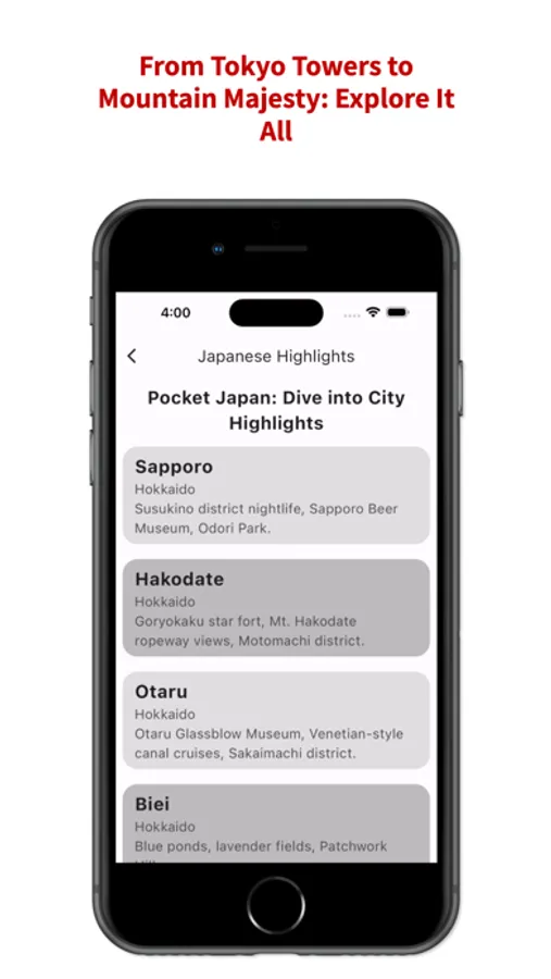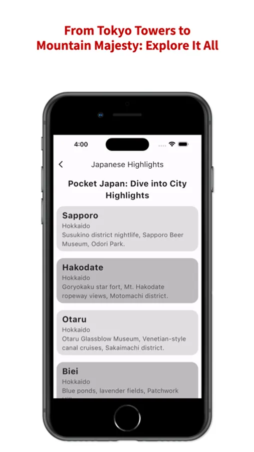 街の宝石 (Machi no Hōseki): Discover the hidden gems of each city with curated lists of must-see sights, off-the-beaten-path treasures, and local experiences. Kyoto's ancient temples, Osaka's neon nightlife, Hokkaido's snowy wonderland - each city unfolds its unique charm.