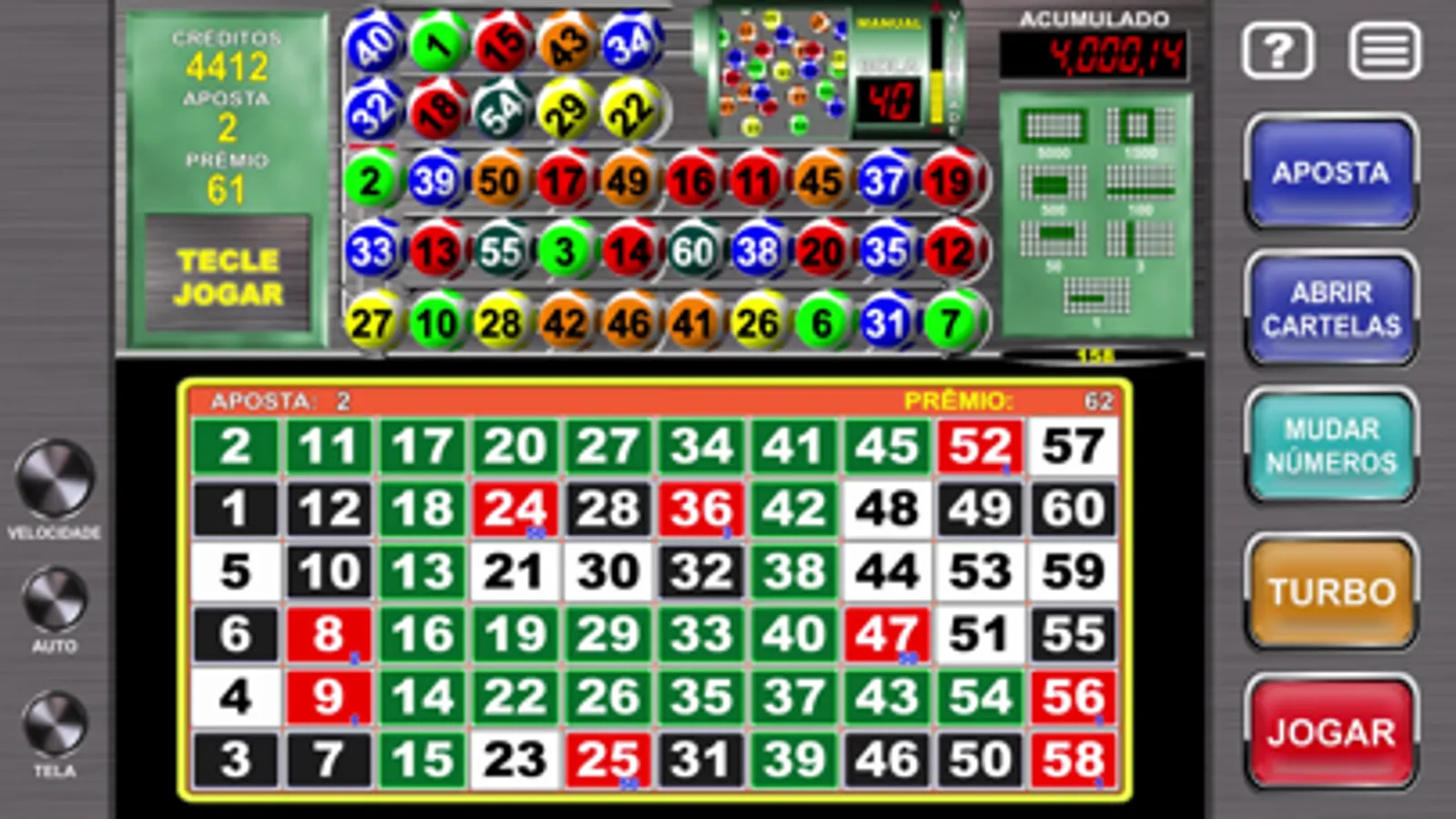 Mega Big: A unique and unprecedented experience! A giant card with 60 numbers awaits you, featuring innovative patterns and the possibility of forming mini-cards within the large one. With 30 balls drawn from 1 to 60 and the chance to buy 10 extra balls, get ready for a bingo game like you've never seen before.