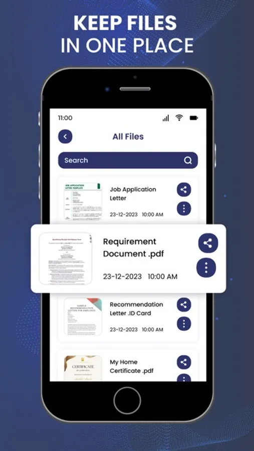 Use your device as a portable scanner. Scan documents, receipts, notes, and any other paper items to generate clear, professional-grade PDF documents.