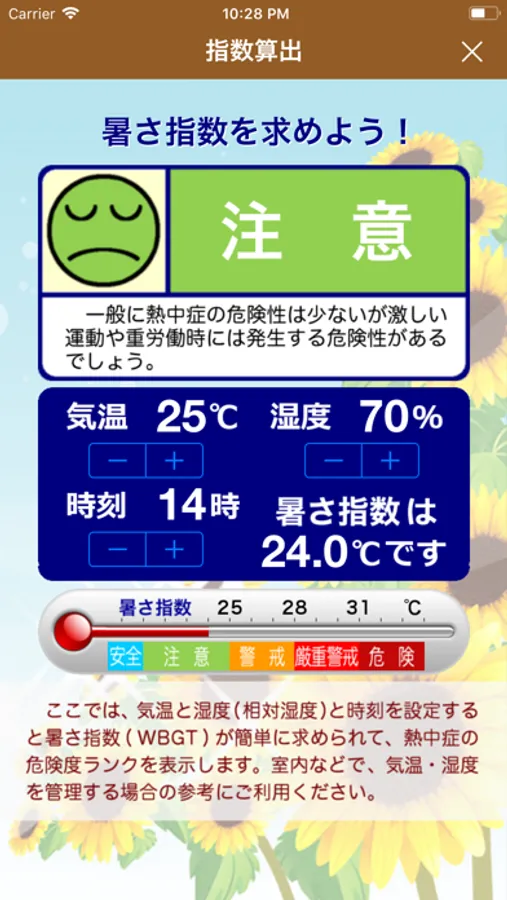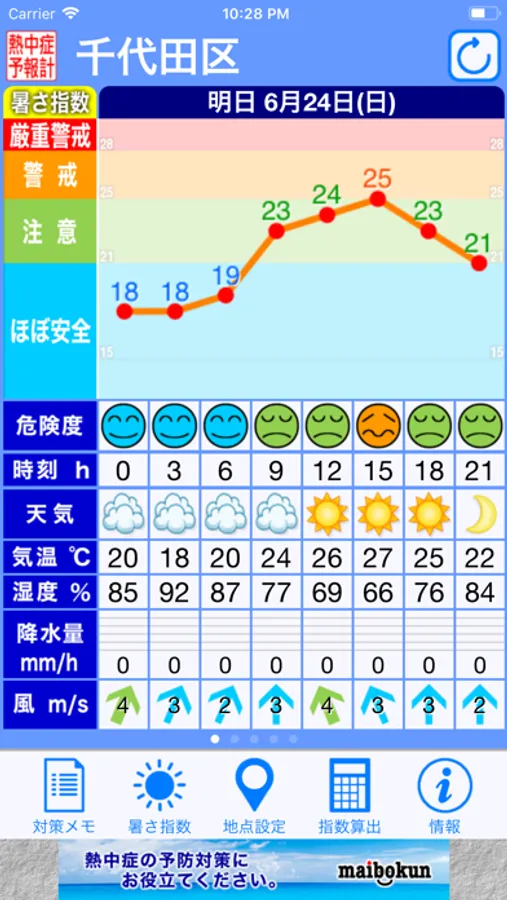 現在の「暑さ指数」をお知りになりたい場合は、姉妹アプリ「熱中症警戒計」をご利用ください。 ==========================