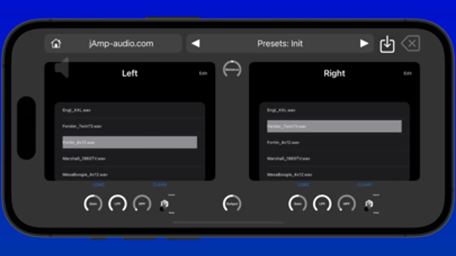 jAmp IR is a zero latency impulse response loader tool in AUv3 plugin format. It is designed to be a cabinet simulator for guitar and bass amps. Two impulse responses can be mixed. Furthermore there is fine level control in the form of high and low pass filters, gain control, and phase inversion. The app comes with 5 high quality impulse responses.