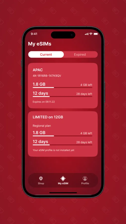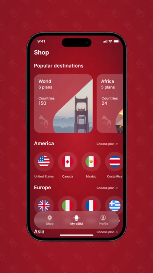 Once a plan has been selected, the app guides users through the process of activating their eSIM profile, providing instant connectivity to the internet in any of the countries covered.