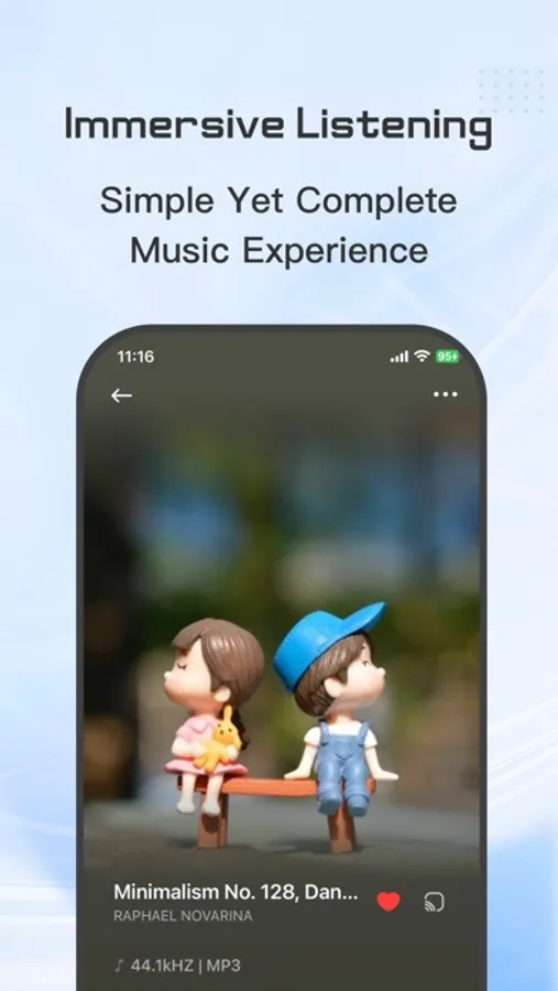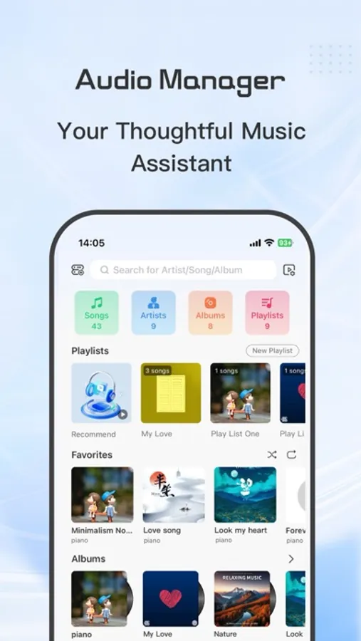 - Displays music lyrics and cover art for a visually pleasing music library.