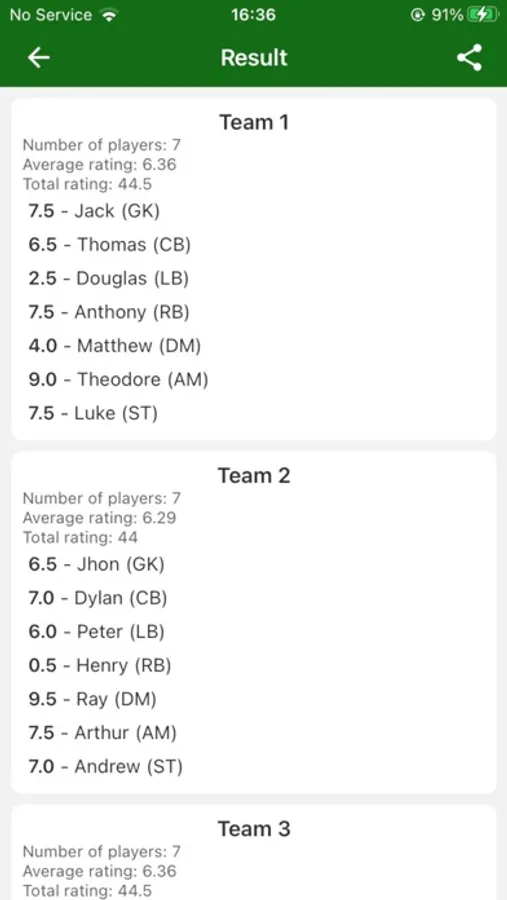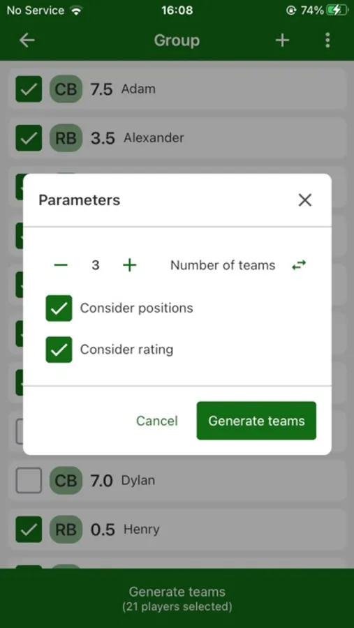 - Adjust the draw parameters: number of players/teams, consider positions and skill level;