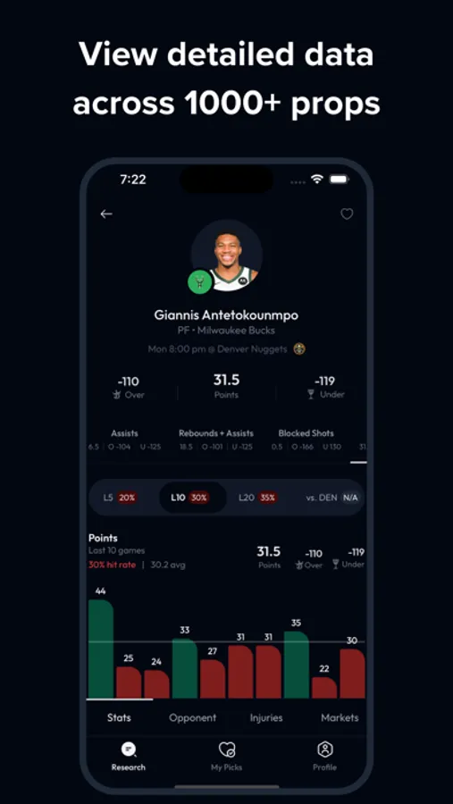 Visualizations make spotting recent trends for your prop bets a breeze, all without the need for scrolling.