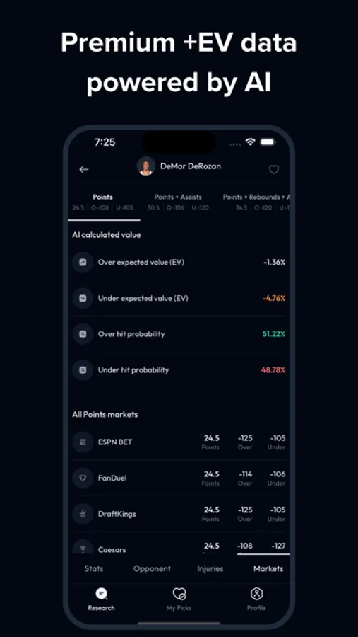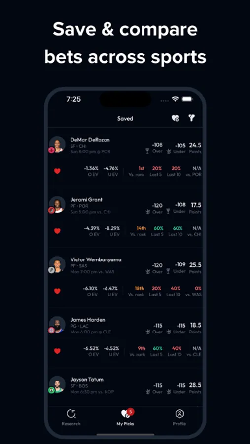 Easily find your favorite prop lines or let our filters highlight high-value bets.
