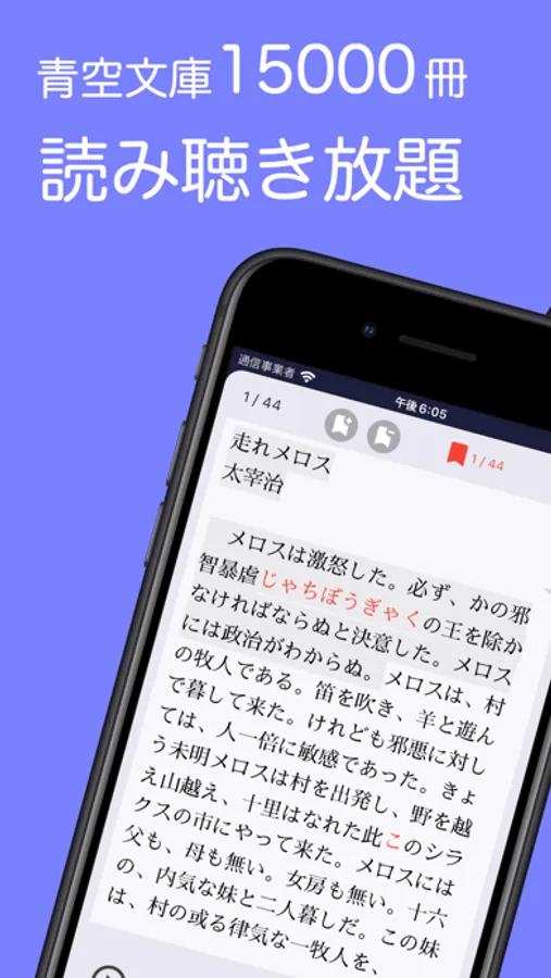 このアプリは、青空文庫に登録されている日本の名著や、任意の学習テキストを音声読み上げする読み上げアプリです。