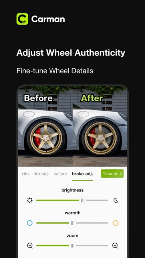 Depending on the differences in lighting environments of imported images, you can manually adjust the brightness, contrast, and color temperature of the wheel, ensuring the authenticity of the modification preview, bringing you closer to the actual modified effect.