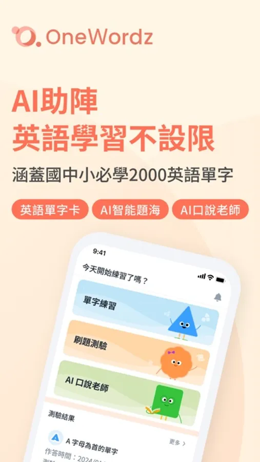 OneWordz APP -- 擁有AI智能題海,涵蓋國中小必學2000英語單字的學習APP