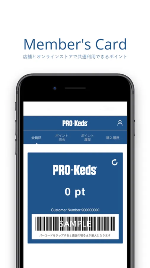 「PRO-Keds」アプリは、対象店舗にて会員証としてご利用いただけるだけでなく、最新のお知らせや、オンラインショップでのお買いものが便利にご利用いただけるアプリです。
