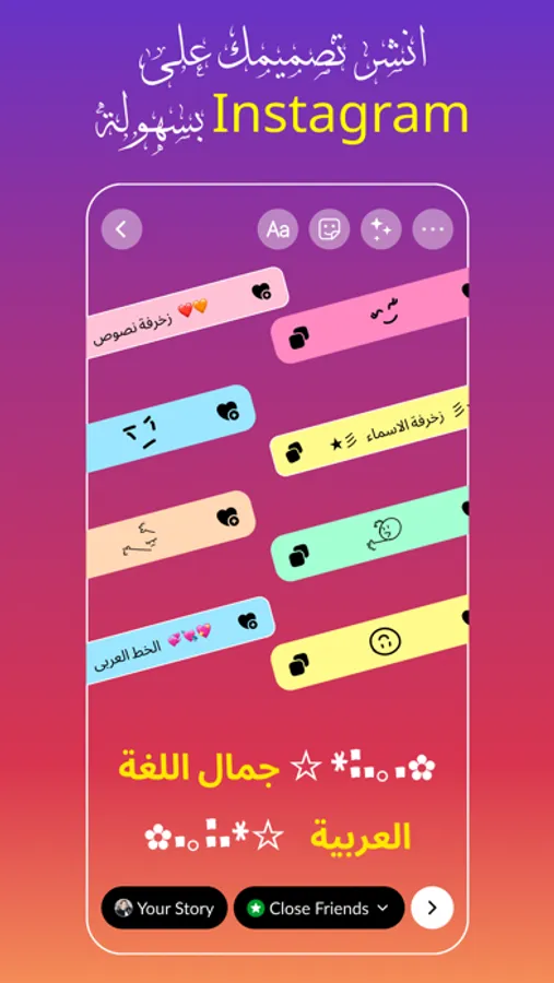 2-أسماء مبتكرة: يتيح للمستخدمين اختيار من بين 25 اسمًا مزخرف بشكل مميزًا لاضافة هوية فريدة على نصوصهم.
