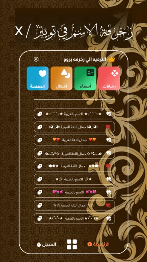 تطبيق "زخرفة " هو تطبيق مميز يجمع بين الإبداع والتنوع لتحول تجربة كتابة النصوص إلى شيء فريد وممتع. يتميز التطبيق بمجموعة واسعة من الزخارف المذهلة والرموز الفريدة، مما يتيح للمستخدمين اضافة لمسة فنية على نصوصهم.