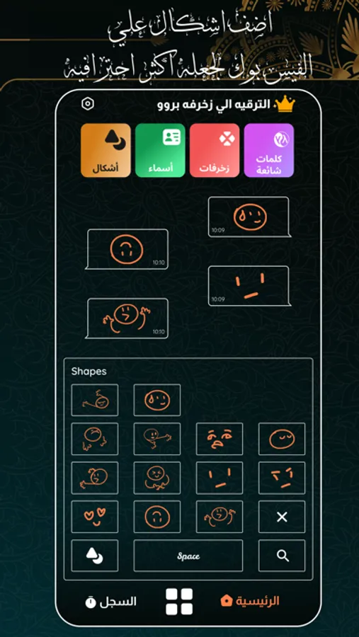 4- اشكال متعددة: يتيح للمستخدمين اختيار من بين أكثر من 200 شكل مختلف لتحسين تصميم نصوصهم بطريقة فريدة.