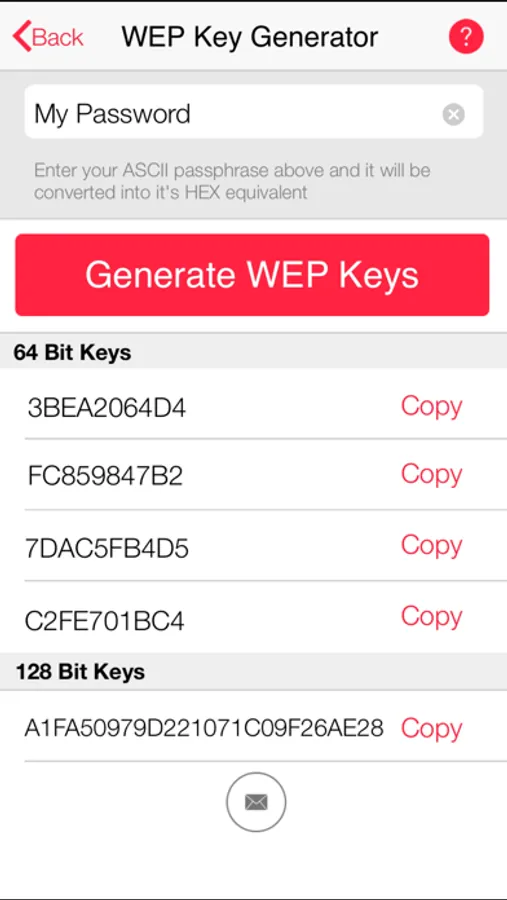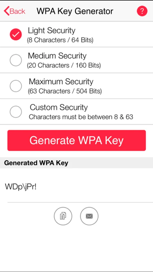 2) Tap on the copy button to use key and enter it into the WiFi setup of your Settings app