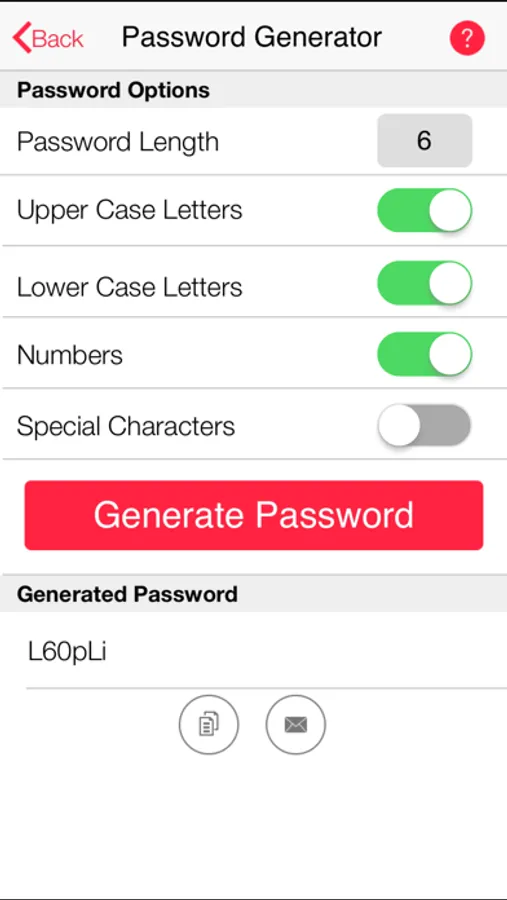 The app offers to generate totally ultra secure and random passwords; you can be feel safe and assured that your password is totally unique, without any worries of other people guessing your password. You can create passwords of any length and include Uppercase, Lowercase, Numbers and Punctuations. You can also send the generated password via email or copied to the clipboard so they are ready for instant use!