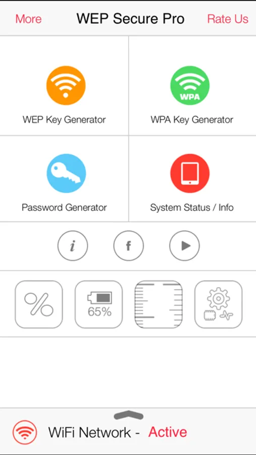 WEP Secure app is well designed and beautiful to look at. WEP Secure is a useful tool to view detailed information of your iPhone and iPod touch. General information, battery, memory, disk usage, running processes and the whole system information are all showed to you.
