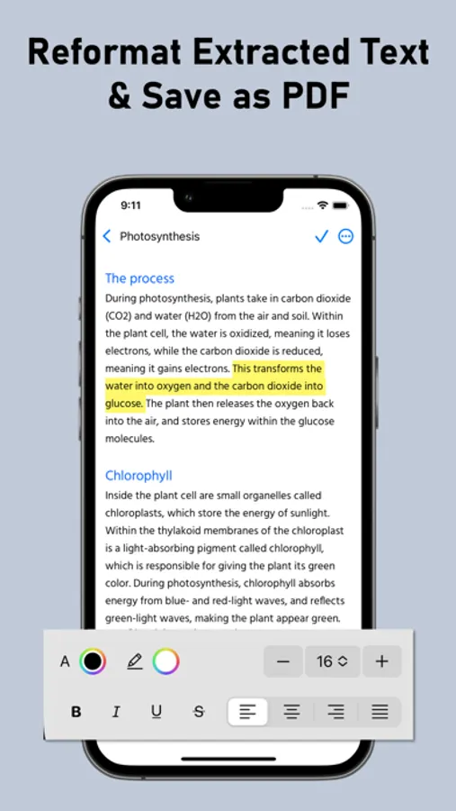 The app also comes with an inbuilt rich text editor so that you can format the extracted text based on your style need. Not only that, you can also save the reformatted text or note in the form of pdf.