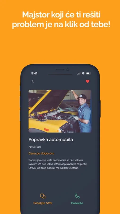 Kada završiš filtriranje oglasa, možeš krenuti u odabir majstora iz naše široke ponude. Oglase koji su ti zanimljivi možeš sačuvati za kasnije i pronaći ih na svom profilu pod kategorijom "Omiljeno". Kada nakon čitanja opisa, komentara i ocena odabereš majstora kog želiš da angažuješ, možeš ga direktno kontaktirati putem telefona, maila ili SMS poruke i dogovoriti saradnju.