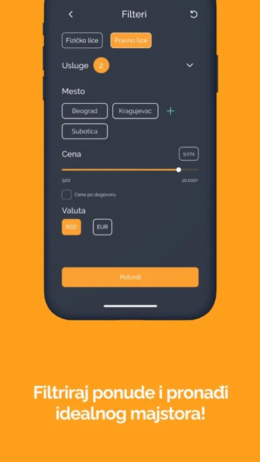 Odaberi opciju "cena po dogovoru" da pregovaraš s majstorom lično