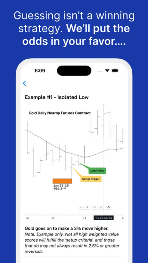 The setup is confirmed when the next day’s price is lower than the prior day’s high (isolated high) or higher than the prior days low (isolated low). In other words, an isolated high is a day in which the high is higher than the day before and day after. An isolated low is a day in which the low is lower than the day before and day after. We are looking for isolated lows or highs on solar/lunar days with high weighted value scores.