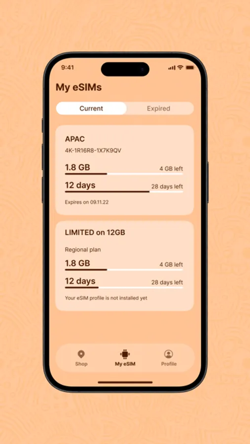Once a plan is chosen, the app seamlessly guides users through the activation of their eSIM profile, ensuring instant internet access in any covered country.