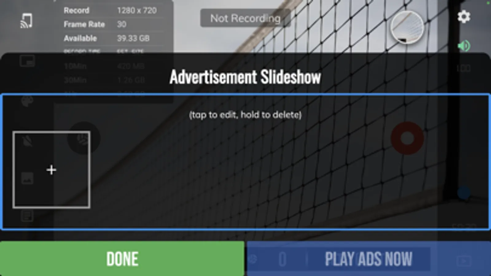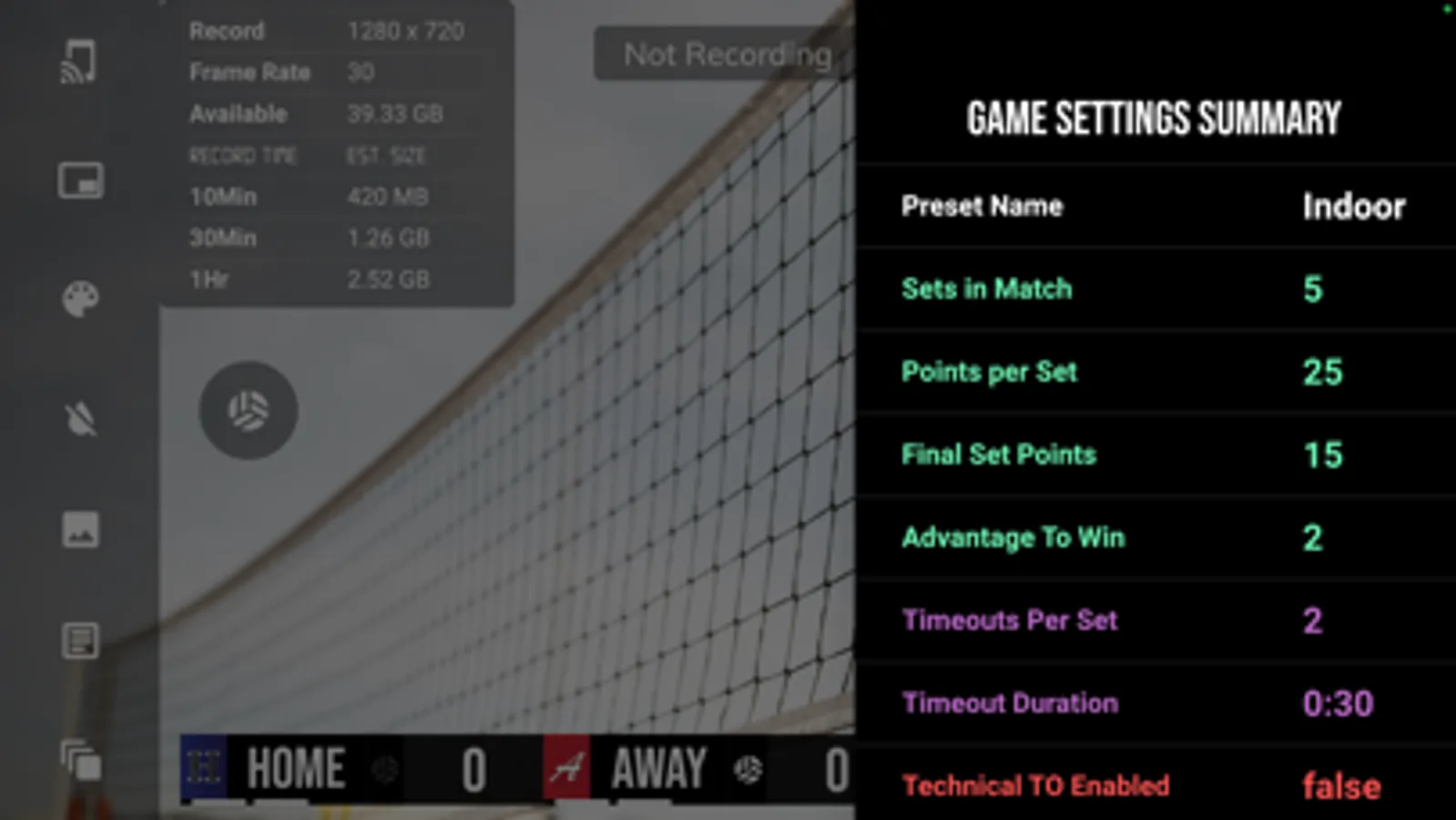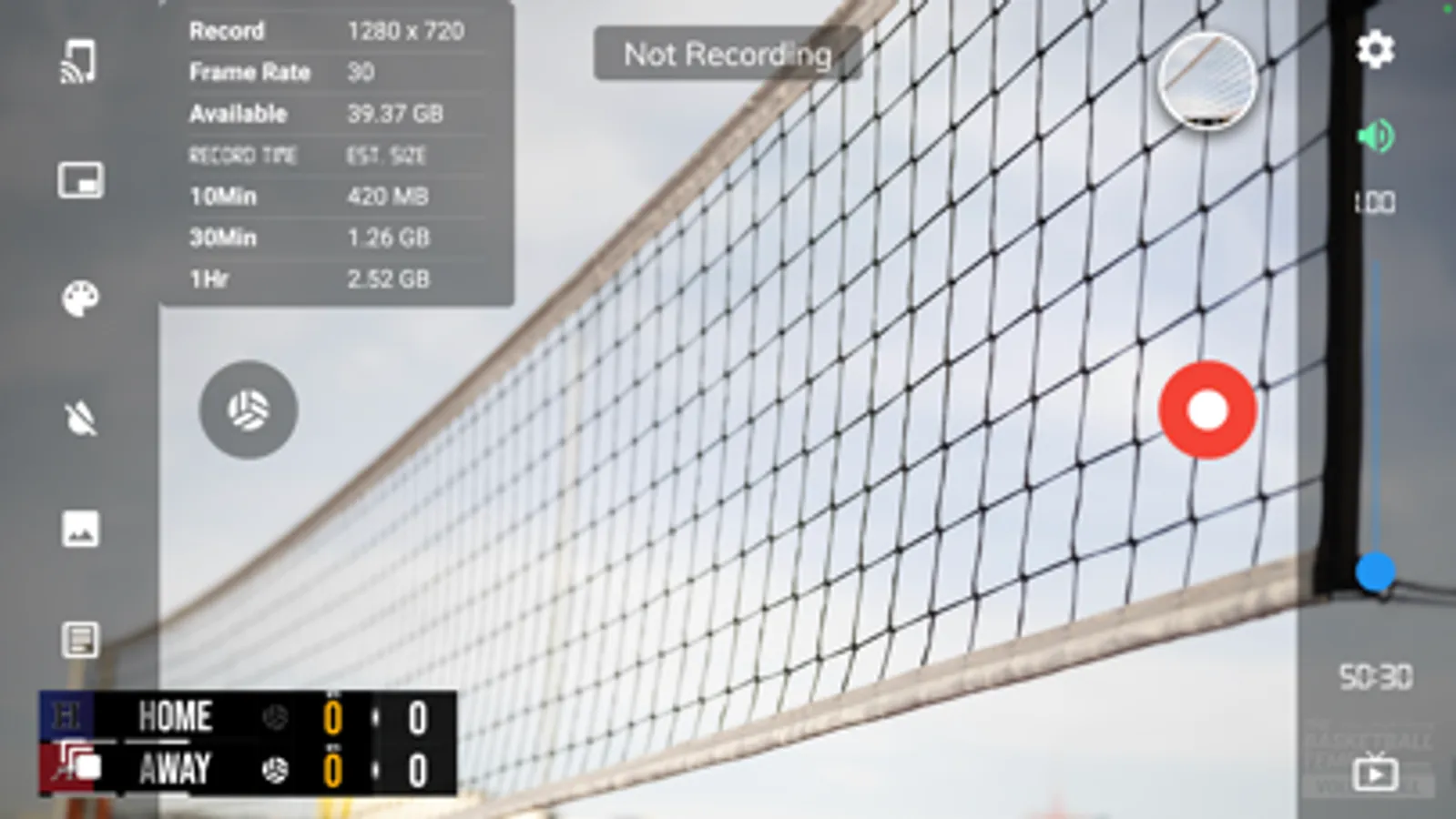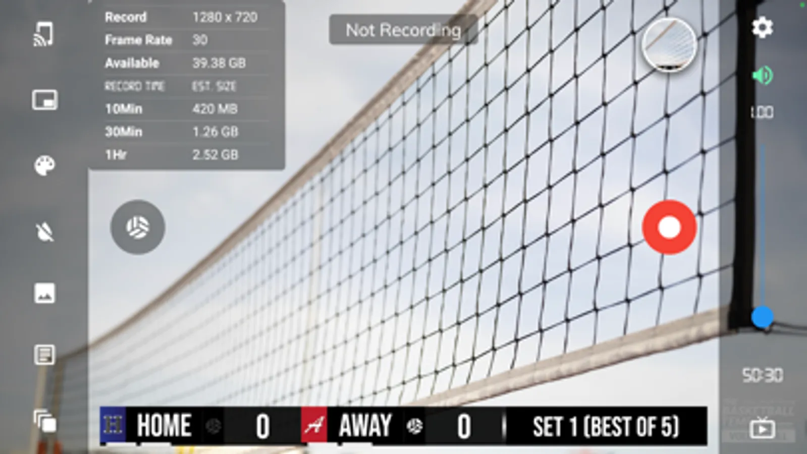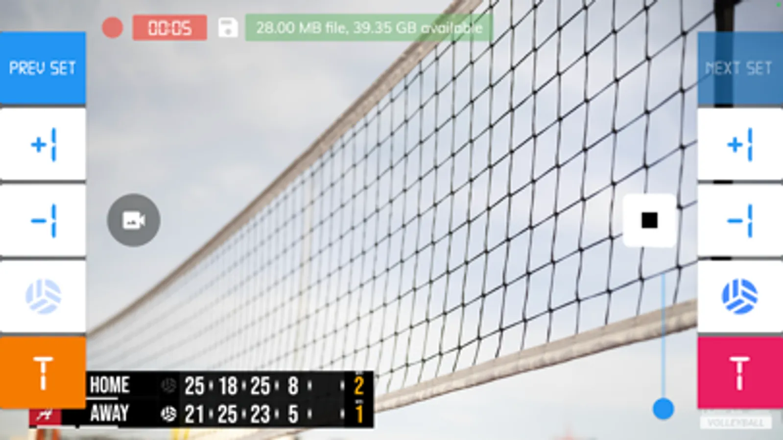 - Record volleyball games with score overlay
