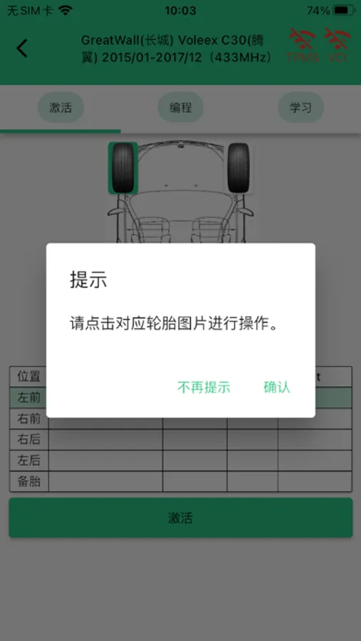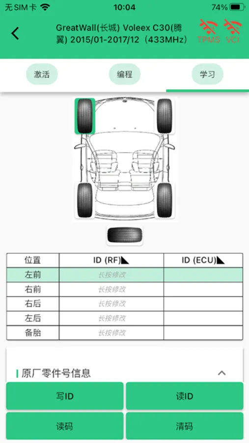 该APP可用于对胎压替换件的编程和对原车的激活。