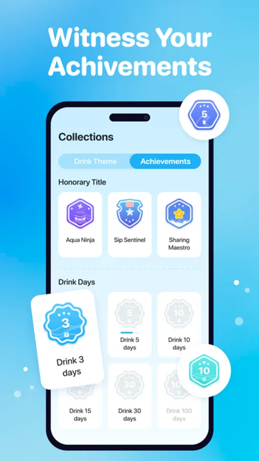 - Feel accomplished by reaching your daily hydration goals and earn badges as a reward.