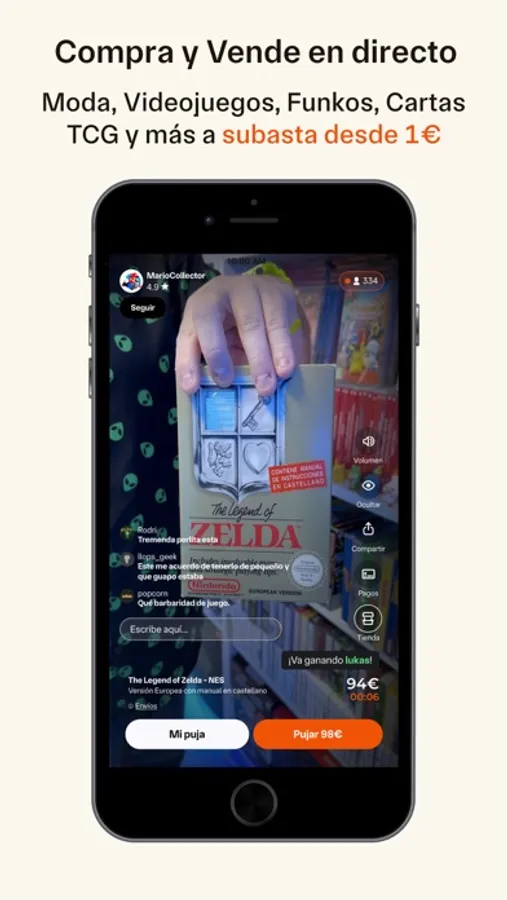 ¿Buscas cartas Pokemon o Funkos? Cada día encontrarás directos desde los que podrás pujar en subastas o bien comprar en directo todo tipo de productos de primera o segunda mano, como Funkos, cartas Pokemon, videojuegos o artículos de segunda mano en moda vintage.
