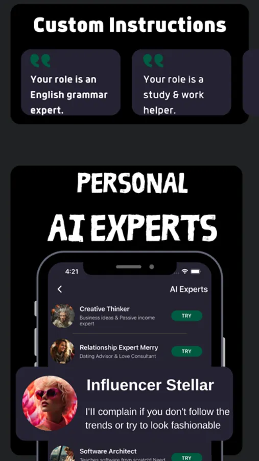 I’m not just a one-trick bot—I've got a whole crew of AI Assistants for you. Whether you're unleashing your creativity with Creative Thinker or exploring the wisdom of the stars with Zodiac Expert, I have an AI sidekick for every situation.
