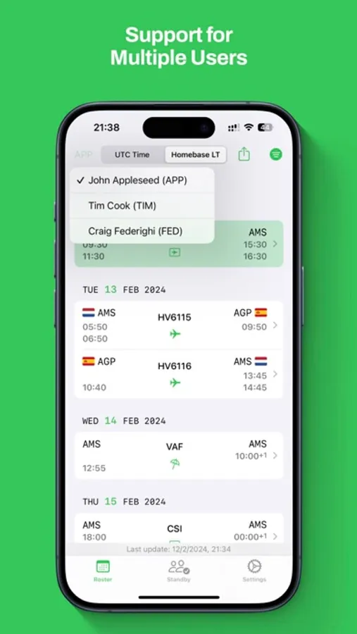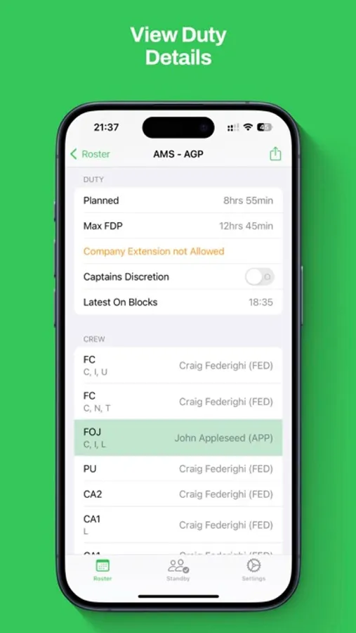- Synchronize your roster to your calendar or LogTen. (Pro feature)