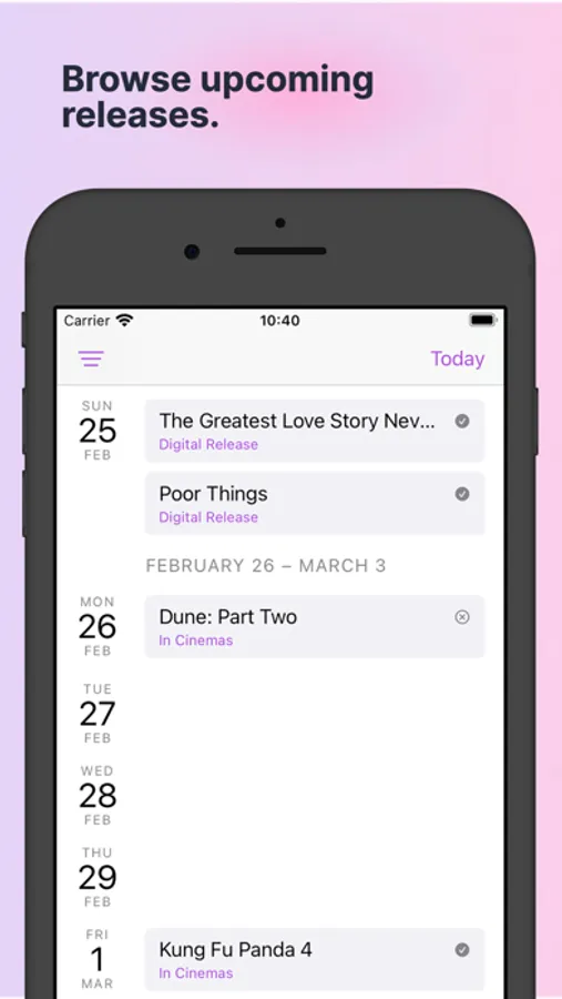• Browse upcoming releases in the calendar