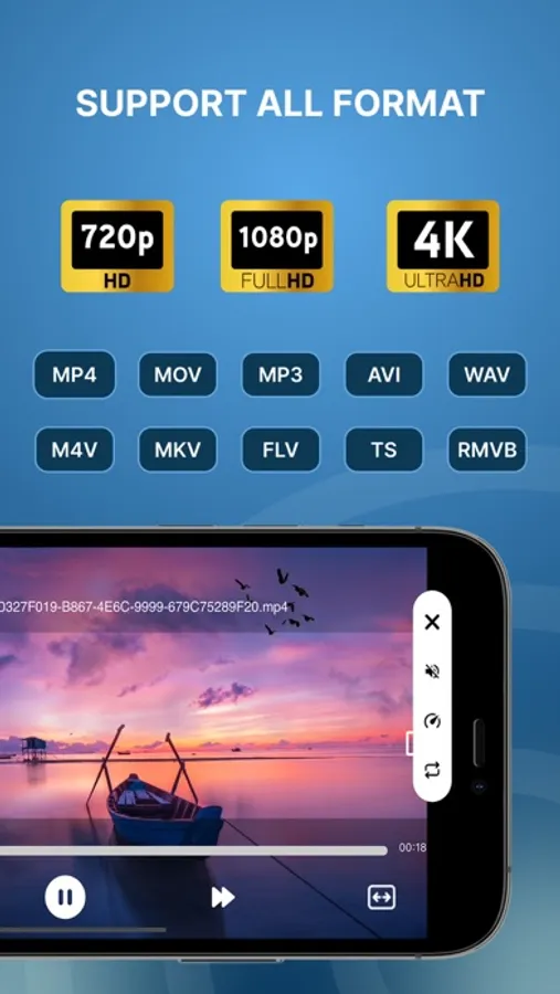 This elegantly designed Video player offers smooth playback and supports all video formats, including MKV, AVI, MOV, MP4, MPEG, and many more.