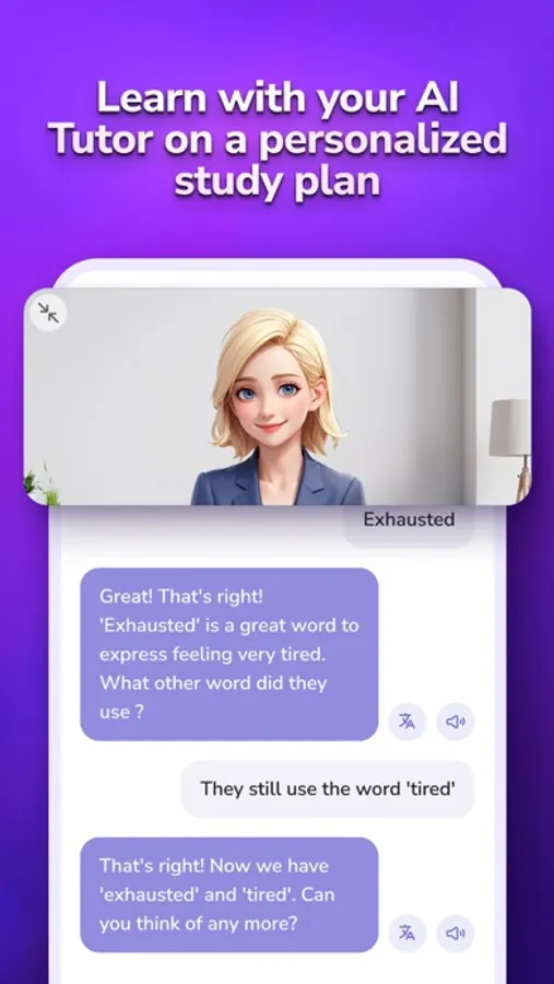 Immersive experience: Engage in realistic conversations with lifelike AI avatars, simulating real-world scenarios to boost your confidence.