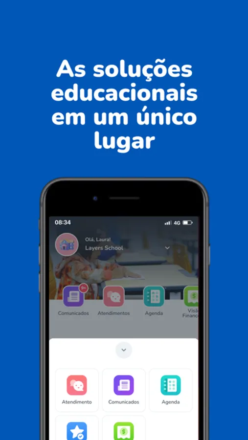 Receba as últimas informações sobre a escola, acompanhe comunicados, seja notificado sobre eventos, tenha acesso a galeria de fotos personalizada e troque mensagens de maneira simples e rápida.