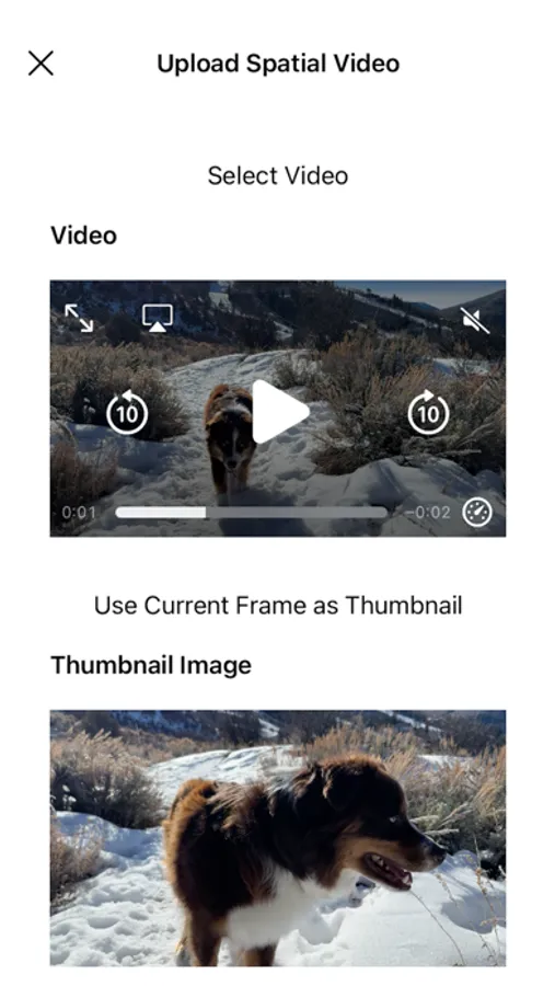 Spatial Videos will only play in 3D on the Apple Vision Pro. On this device you can upload Spatial Videos taken on your iPhone and preview videos when you don’t have access to a Vision Pro. Use this app on the Vision Pro to view Spatial Videos the way they are meant to be seen.
