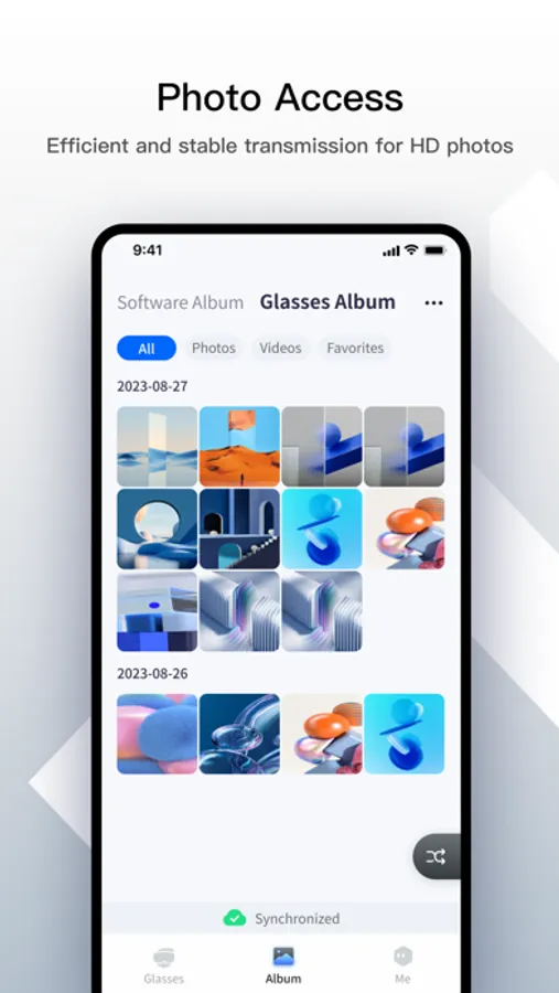 The Wi-Fi module of the glasses is used to send hotspots. You can export the photos taken by the glasses from the photo, and synchronize, view, edit, share, and save the photos. App Center is integrated with third-party app platforms to manage glasses, translation, navigation, and other apps. You can obtain different experiences through the AR glasses