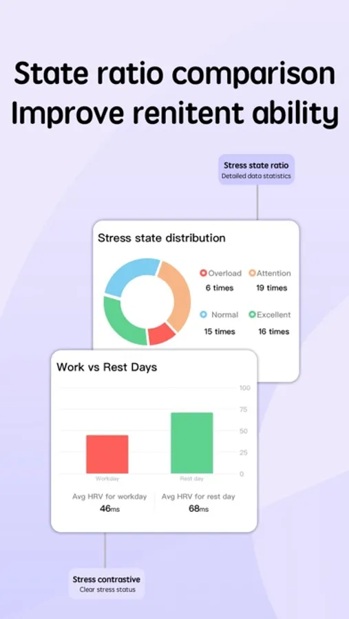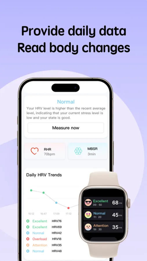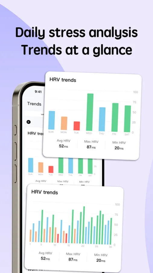 Stress Monitor will calculate the heart rate variability (HRV) through the heart rate data recorded by Apple Watch, and track and analyze it, so that you can more intuitively understand your body status, so that you can better perceive, manage and cope with stress.