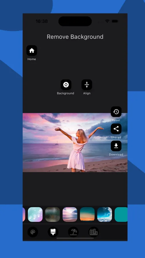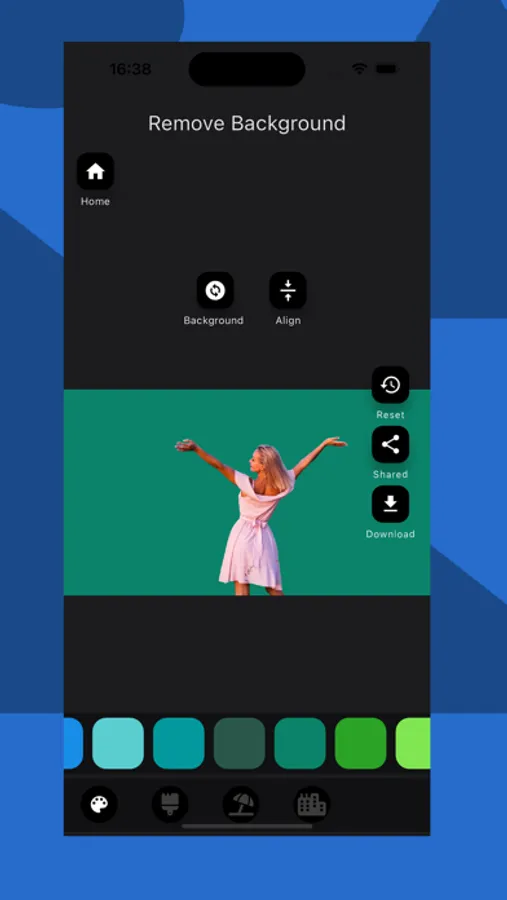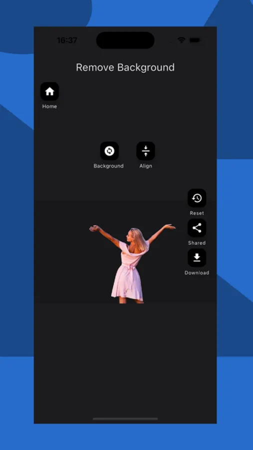 Permite remover fondo de fotos tomadas en el momento con la cámara del dispositivo o seleccionar imágenes del álbum.