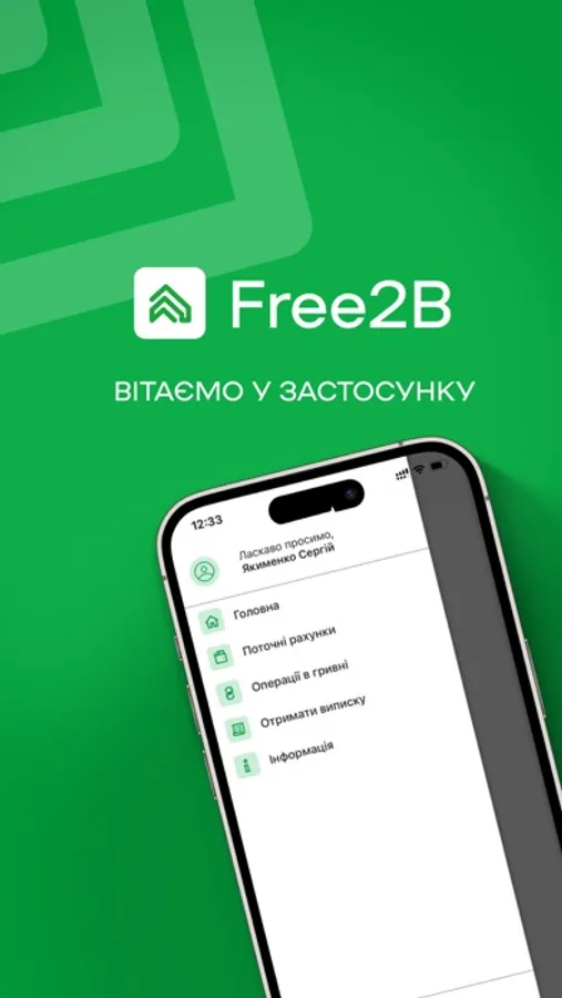 Free2B is a mobile application for legal entities and entrepreneurs that provides Bank Credit Dnipro clients with the ability to remotely manage their business finances.