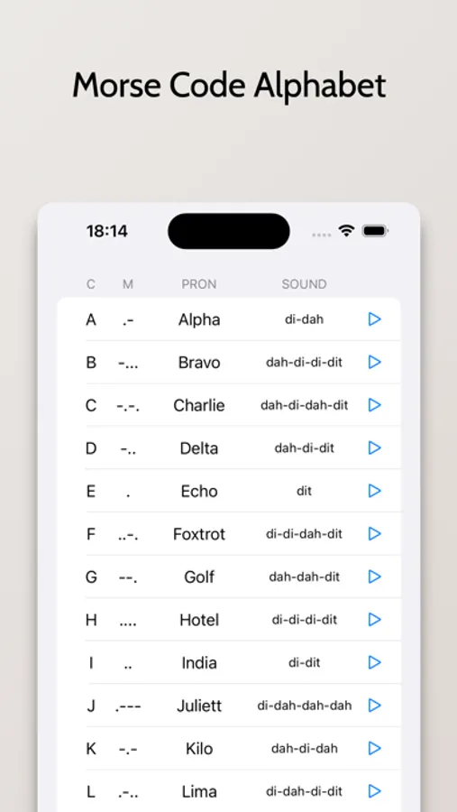 The 'Morse Code Alphabet' feature comes handy as a comprehensive reference guide where you can check out the Morse code symbols for each alphabet and number. It's like having a Morse code cheat-sheet right in your pocket!