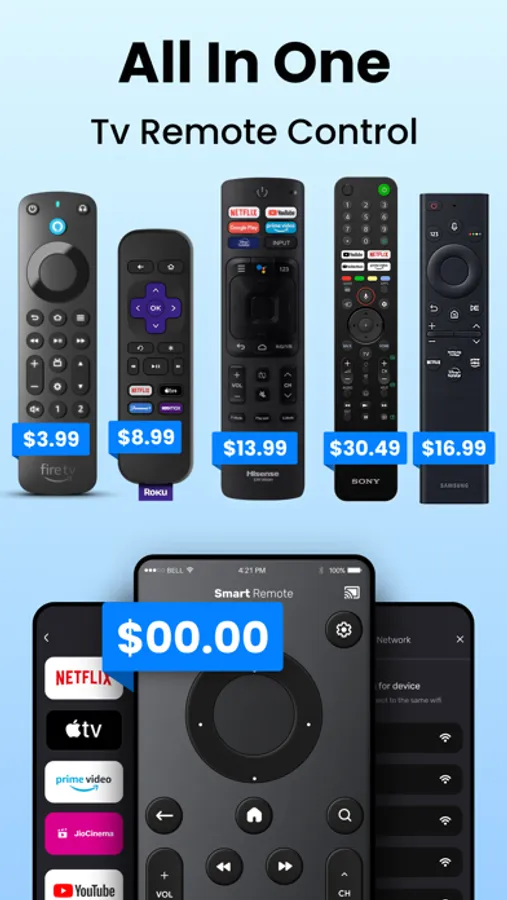 ● All-in-one smart Remote control for all TV.