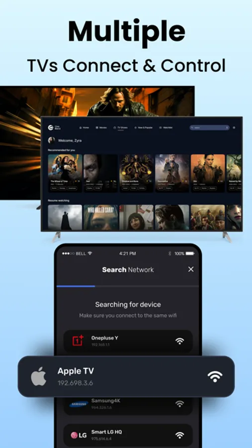 ● Control your Smart TV using WiFi or even your Non-Smart TV using IR Blaster.