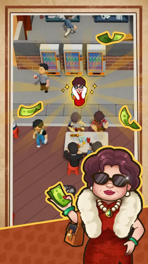 Unique gameplay. Utilizing joystick 3D controls, you can develop skewers, purchase land, and recruit staff through ground interaction points.