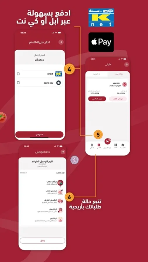 Pay for all your orders securely through the integrated Apple Pay feature or through K-Net within the app.