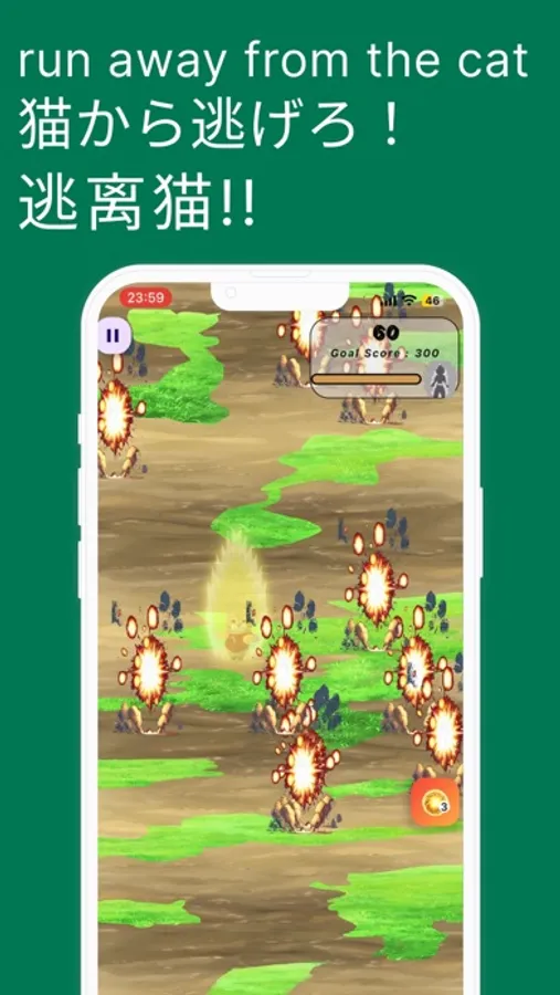 Control your cat with a swipe and escape! You can attack by picking up fallen items!