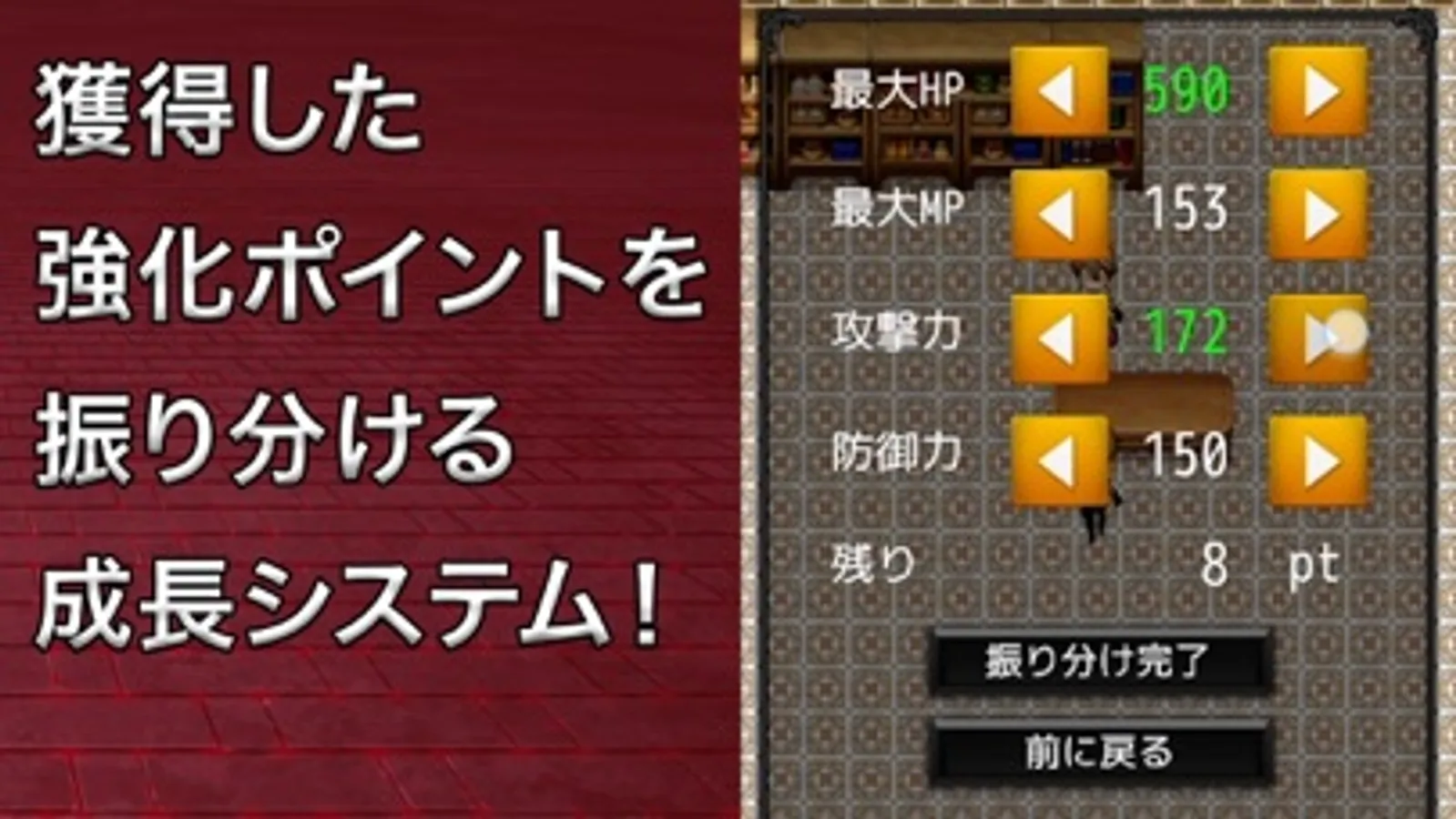 Enhancement Points System. Earn points from battles with the Demon Lord. Allocate them freely across stats like HP, MP, and attack power to strengthen your hero.