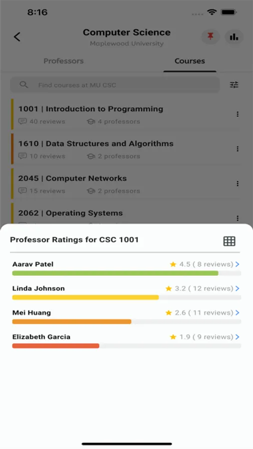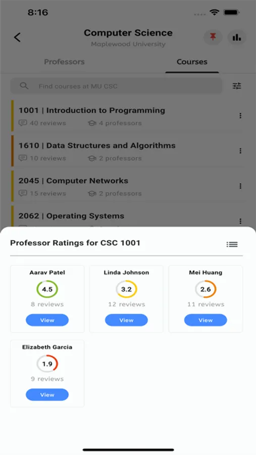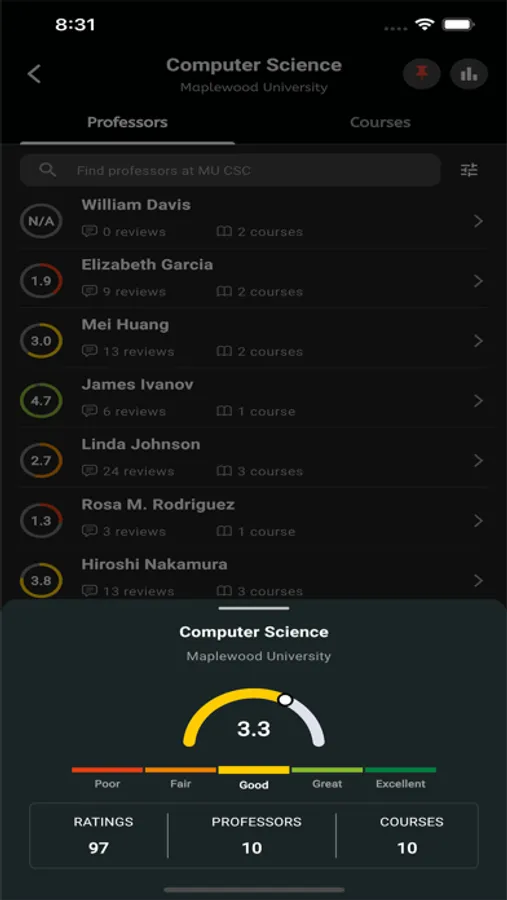 Very user-friendly and useful app. Provides a lot of useful information and views to find what you want. For my particular school and department it has a good amount of data, and it works great with it. All the app needs now is more people across schools and departments using it.
