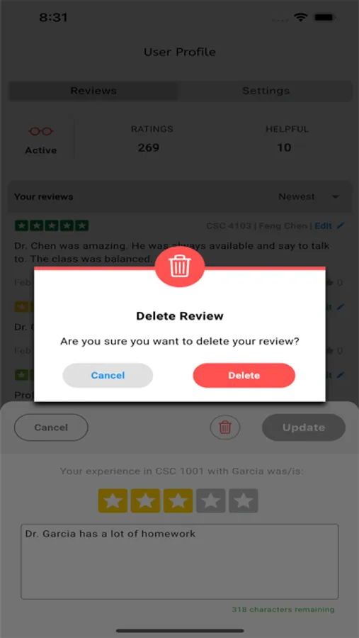 Developer of this app gave a presentation to our class and basically bashed on rate my professor for 80% of his presentation. You leave any bad reviews about teachers he likes or himself he has them taken down immediately. It’s hypocritical and lead to inaccuracy. Would give less stars if possible