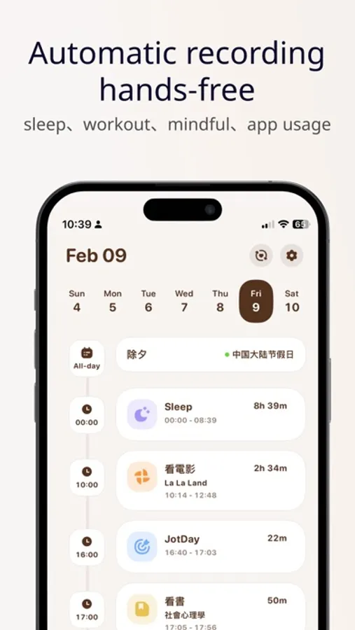 4. Timeline: Presents your day in an intuitive timeline, allowing you to easily view activity records and add notes.